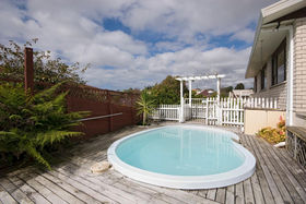 North facing decks with views, large sunny living area, rumpus room, study and swimming pool.