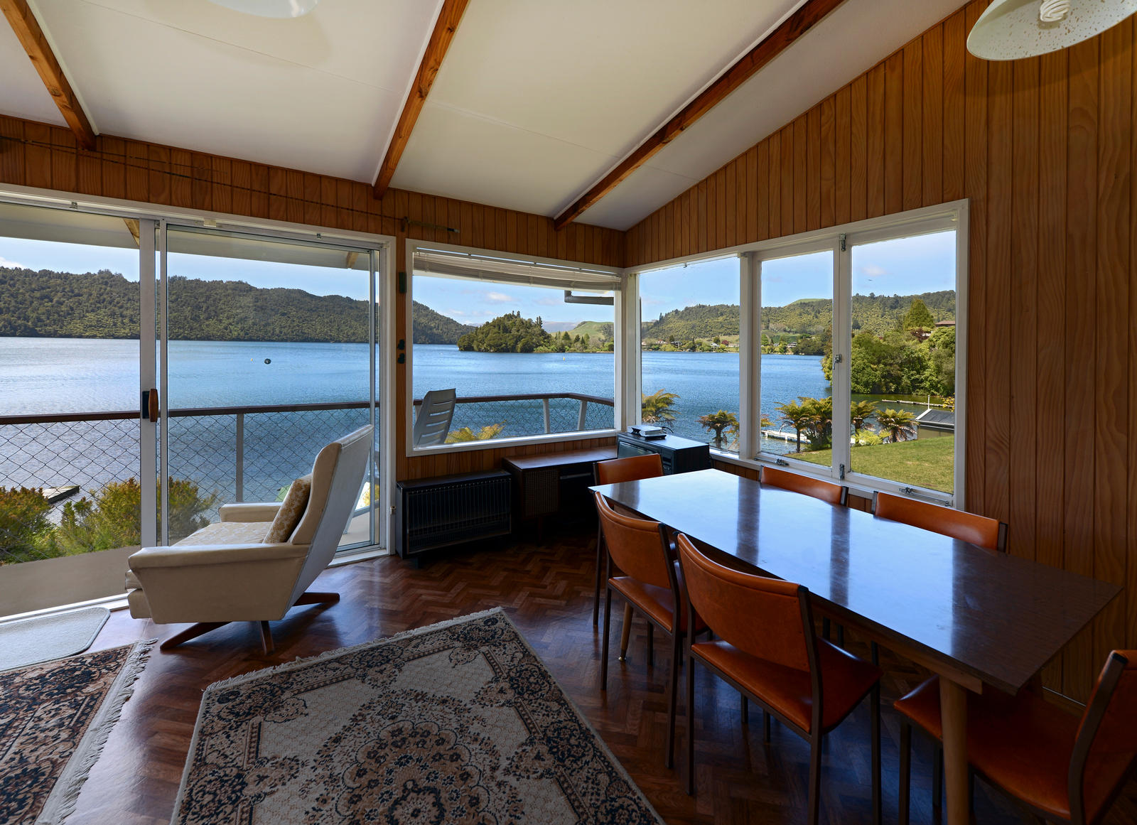 The quintessential kiwi bach has open plan kitchen, dining and lounge which directly accesses a wrap around deck that captures all the morning sun - the perfect place to enjoy a relaxing breakfast and absorb the tranquility of Lake Okareka at its finest. The master bedroom is on the first floor and features a dual access en suite. Downstairs has two generous sized bedrooms, one of which has French doors which provides a seamless flow to the expansive lawn directly to the water's edge. The separation of the guest bedrooms from the main bedroom is a real feature as these rooms could accommodate a raft of kids. The 979m2 site slopes from the road has a unique and sort after commodity with lakes properties being a wide flat lawn directly to the water's edge.