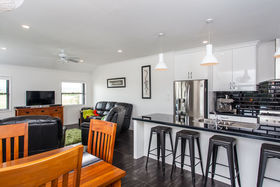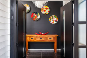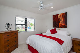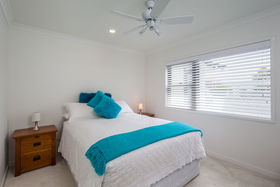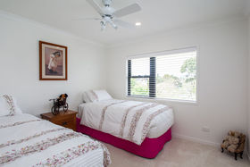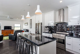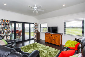 open plan living which flows effortlessly to a sun drenched deck. Formal living with wood burner, heat transfer system and one of 7 ceiling fans throughout the home allows comfort all year round.