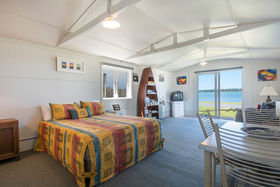 They have transformed the original house into a practical, cosy, very stylish, comfortable, low maintenance home. Virtually new throughout improvements include brand new kitchen and bathroom, new pink batts and gib to the walls and ceiling and extensive rewiring and plumbing. The property has been completely repainted inside and out. Tastefully decorated this home exudes style and charm. You can just move in and enjoy the sparkling water and unique setting.
