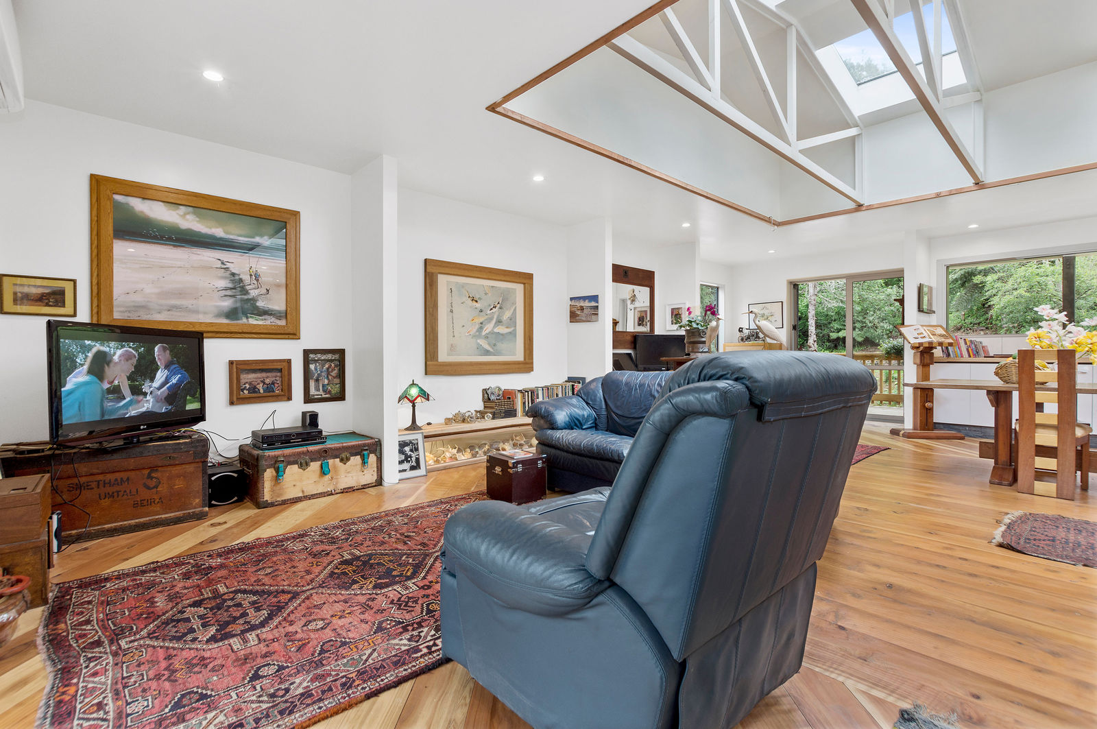 The one bedroom elevated 150m2 (more or less) home has just been completed with style, quality and loads of character. Constructed with love and artistic flair, the home features Californian Red Wood flooring, 50m2 deck, new double glazed aluminium joinery, a modern Blum German Kitchen, and a style that creates a fabulous atmosphere as soon as you step through the door.