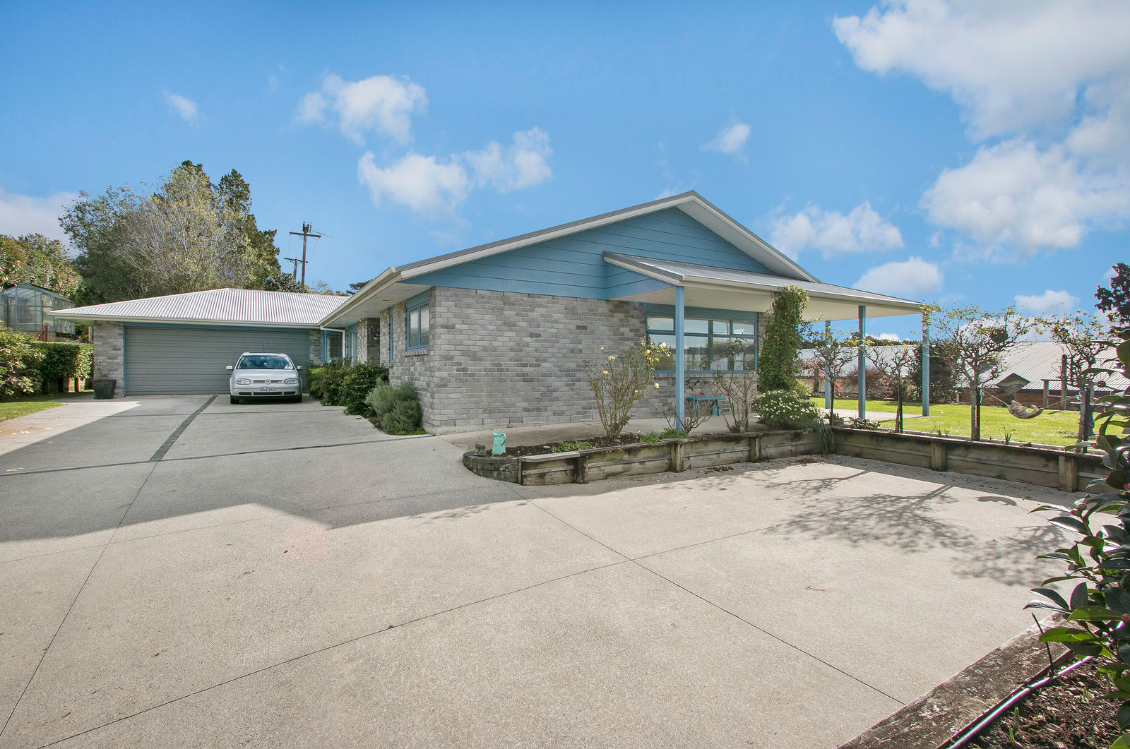 In a quiet cul-de-sac with other quality homes you will be delighted to drive up the tree lined driveway to a perfectly flat parking area and with space for a camper. All the living areas and master bedroom are perfectly situated for maximin sunshine and with the covered veranda running along the front of the house give's you shade in the summer months. The rooms are all spacious and light, the elevated section of 1070m2 has many fruit trees and landscaped gardens, there is a double garage and a garden shed. All in all, this lovely property has everything you require, come and put your mark on it but be quick as it is priced for a quick sale. Phone me NOW!
