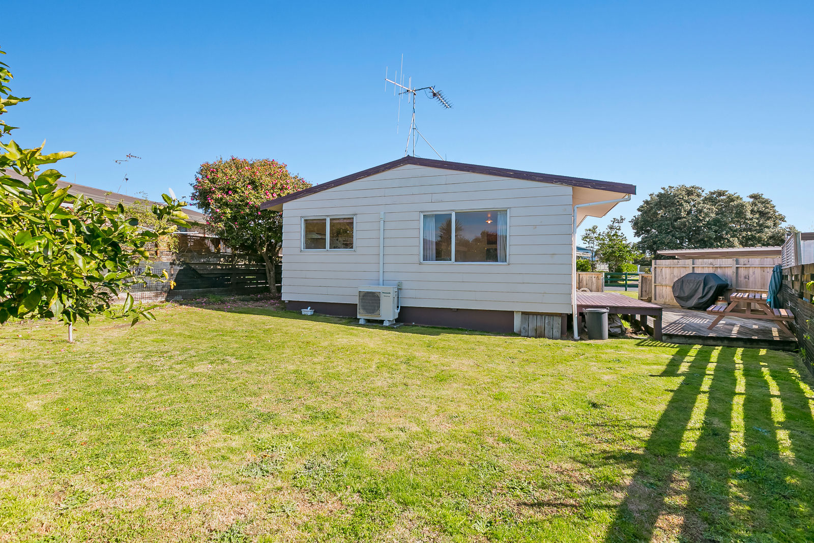 The warm, sunny lounge with Heat Pump is complimented with an adjoining dining area and a spacious, open plan kitchen. Doors flow out onto a sunny entertaining deck and flat lawn. A separate laundry and plenty of storage keeps it nice and tidy. A good-sized family bathroom completes the home.