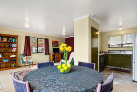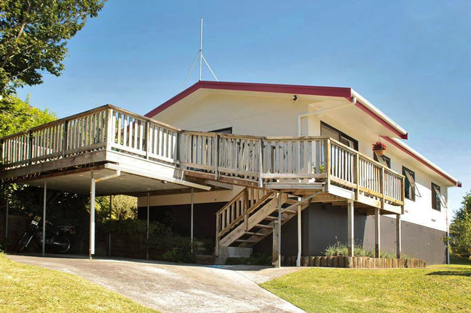 Elevated above the street, enjoying sunset views from a sun-drenched deck is a warm, easy care home. Just enough grounds for you to play or garden in without the stress of a huge section.