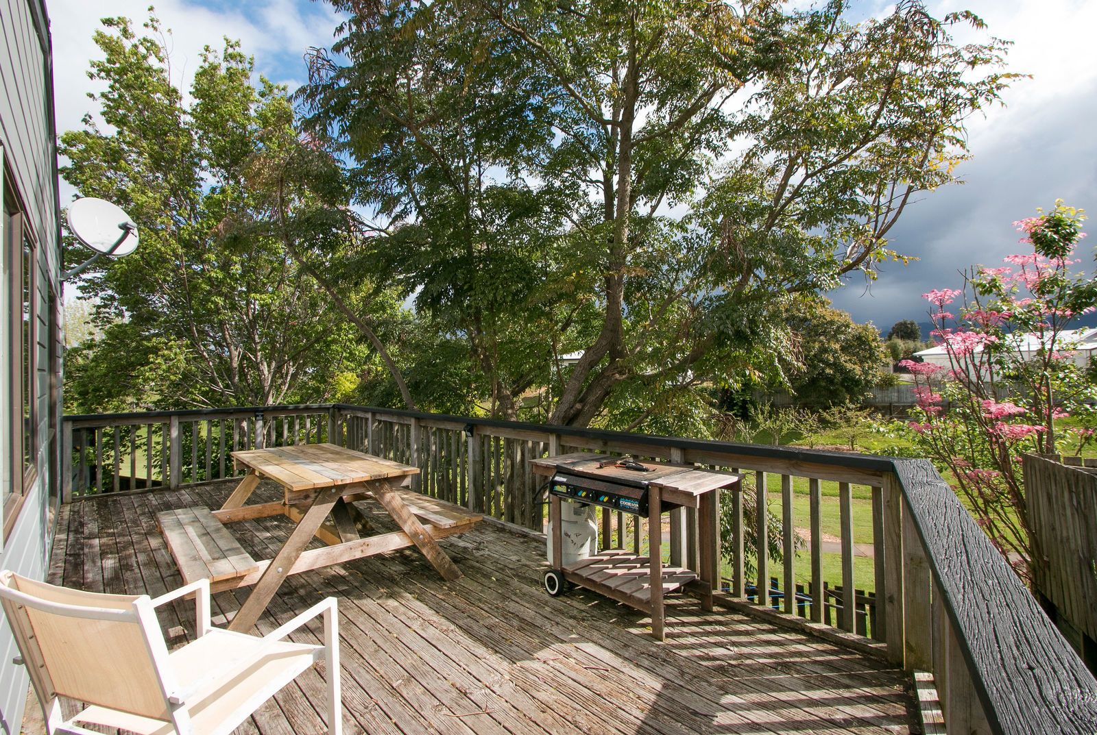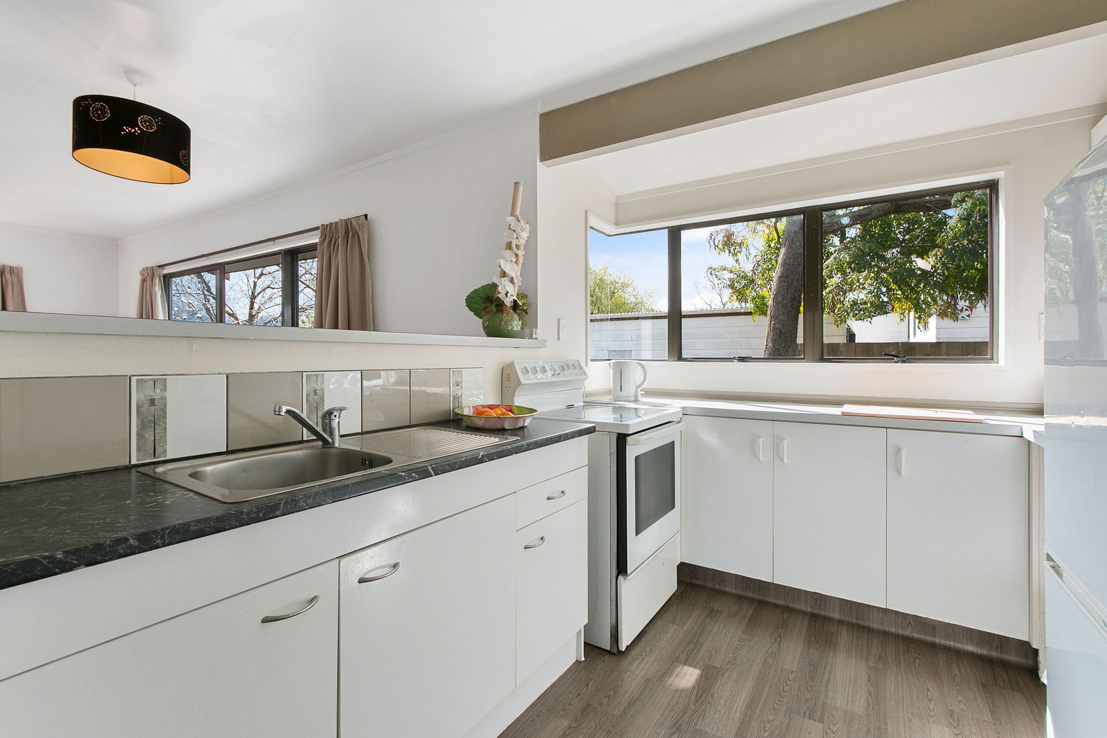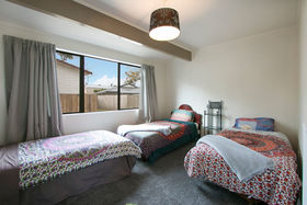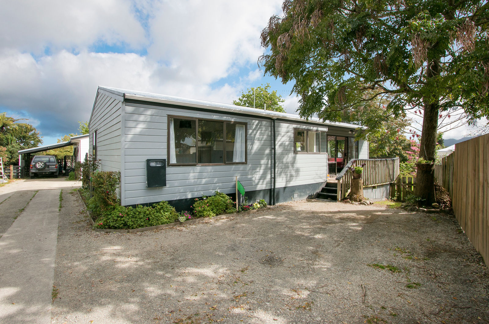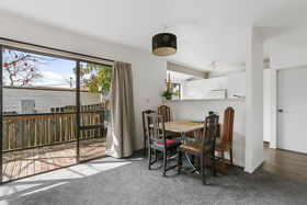 At $410,000 9A Gilfillan Drive has a sweet 1990s open plan three bedroom home set on a 474sqm section with plenty of covered outdoor entertaining area overlooking the park next door. Large windows on the north-facing side let the sun flood into the living area. A carport provides undercover parking at the back door.