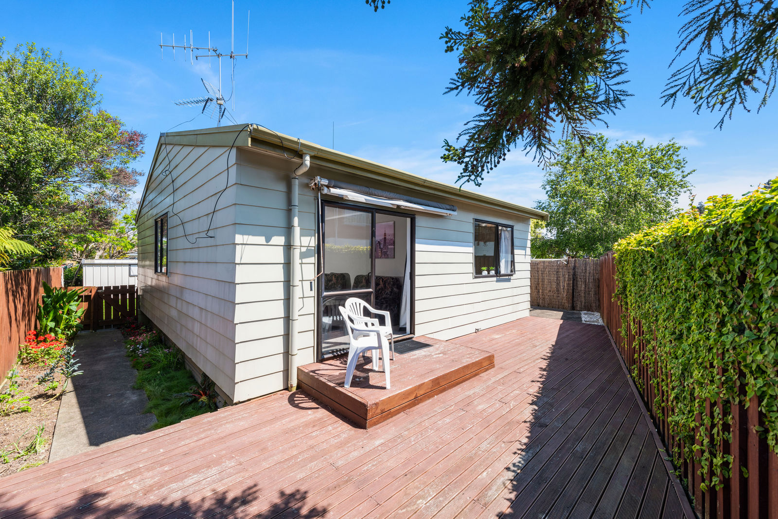 A private sunny Matua site featuring two double bedrooms, separate kitchen and open plan living / dining area with sliding door access to a large decked area.