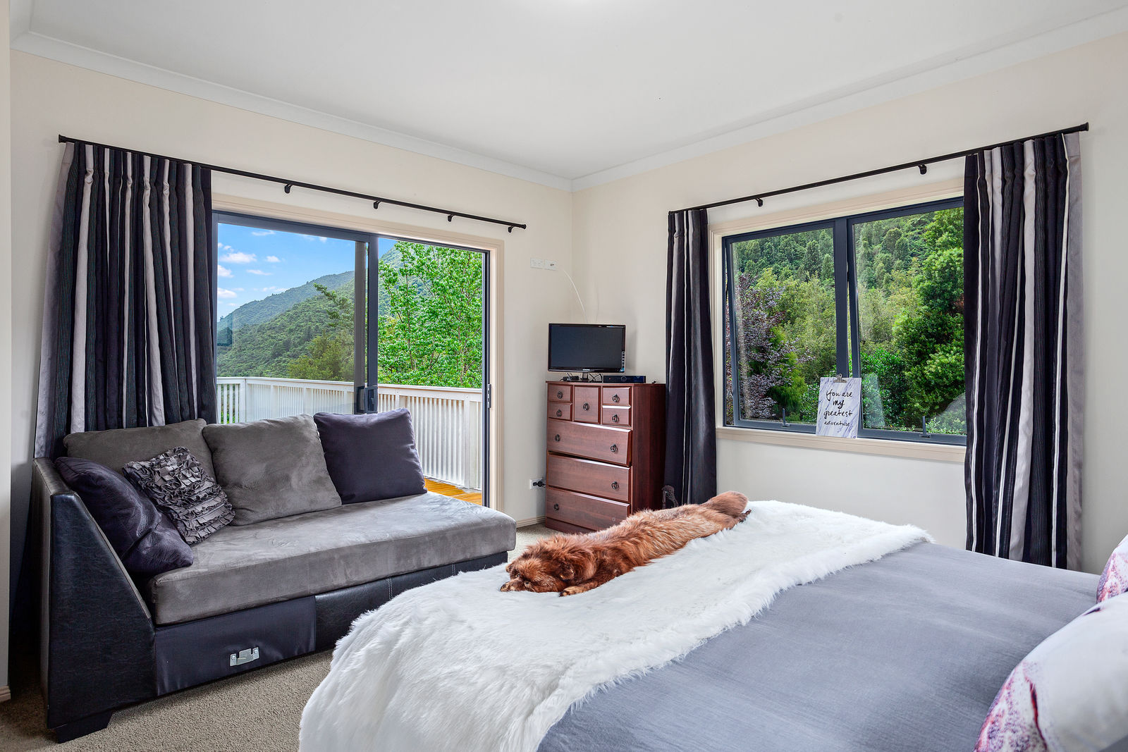 Across the road from the river, this Pakihi Valley property has an outstanding home, and good shed and vehicle storage space, and a studio or artroom. Drive up the flowering cherry tree-lined driveway to the beautifully appointed and sunny home, built in approx. 2010, with modern décor, three bedrooms and two bathrooms. Super-sized deck area (approx. 100m2) that overlooks the yard and brings the living outdoors to enjoy the birdlife and the blissful peace and quiet. Total land area of 21.950 hectares more or less, which includes Acacia and Silver Wattle planted for firewood in 1990's, approx. 13 hectares of bush, and approx. 1.0 hectare of grazing that is fenced into four paddocks immediately around the house and sheds. All the home comforts for permanent living but a feeling of being on holiday and amongst nature. Revel in the privacy, seclusion and rural living. Call now to arrange to view.