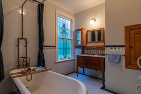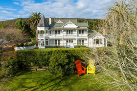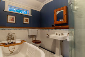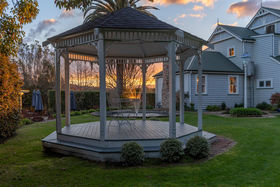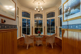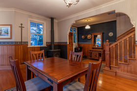 The authentic two storey villa, framed by flowering cherries provides high-end accommodation for a bridal party, and has also been run as a 'B&B'. Gleaming native timbers, warm reception rooms, luxurious bedrooms, and sunny verandas create a unique retreat. This replica Victorian influenced character home was built from scratch in the mid-1990s using genuine materials, period decor, and incorporating contemporary convenience and comfort. The lodge is being sold fully furnished. (It would of course make a wonderful family home.)