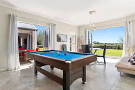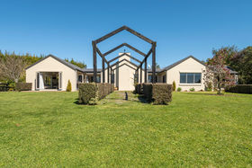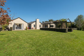 Large linked living spaces with tiled floors and an entertainer's kitchen with an expansive butler's pantry highlight a home spread along the sunny plateau with doors galore to sheltered outdoor living. Enjoy views from all living areas, the master suite and a large office which could be converted if a fourth bedroom was desired. Sensible farm friendly features see smart urban style nodding to rural practicality.