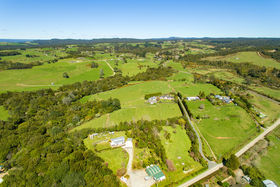 The eleven paddocks of 6.2059 hectares slope gently around the home grounds and form part of the delightful rural vista from the north facing home. The contemporary dwelling is approached up a tree lined drive along the side of the property. The drive continues to circle a large barn incorporating two stalls and tack or store room, also creating good access to the yards and loading bay and the paddocks. Mature foliage and native bush border much of the well fenced grazing ideal for the stock of your choice or horses. The property currently grazes several beef cattle and nine highland cows.