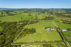 A superior rural property which combines a very attractive farm with bush borders, elevation for views, shelter and sunshine, and a large contemporary home spanning the ridge.
