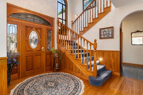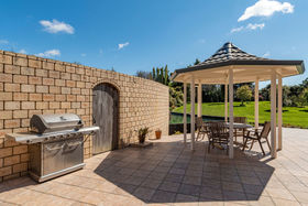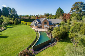 Two-storey brick homes are rare in New Zealand and even rarer one with the attention to detail displayed in the exterior brickwork where the many hues of Australian bricks meld in sun warmed harmony. The interior is equally detailed and provides expansive living in classic style with contemporary comfort, easy flow and a mix of open and intimate spaces enhanced by heart rimu in joinery and stair balustrading. The ground floor spans big efficient kitchen, breakfast bar and dining alcove overlooking the grounds, casual living and separate lounge with open fireplace and a formal dining room with a serving hatch from the kitchen. There is one double bedroom, bathroom, and laundry on the lower level. 'Gone with the Wind' style stairs lead to a long landing off which are two more bedrooms, a family bathroom, and a magnificent master suite with views west towards the ranges. The ground floor has diesel fired underfloor heating.
