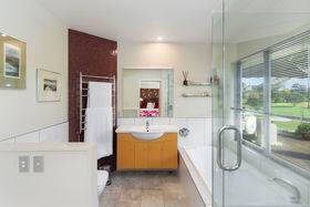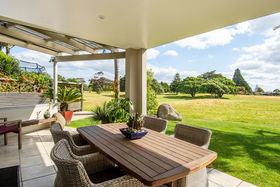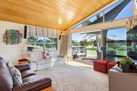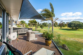 With uninterrupted views over the fairways and summer blooming Pohutukawas of the Mount Links, 120B Oceanbeach Road was designed and built to make the most of its enviable location. The golden sands and surf of Mount Beach welcome a stroll across the road and the green vista of the golf course stretches languidly along the entertainment and accommodation face of the home.