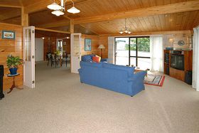 Very large garaging means space for boat or hobbies for the man. Two large living areas plus a spacious open plan kitchen/dining area are perfect for the lady and children of the house. Opening from family area and lounge is a good sized deck with a sail for sun protection.