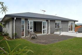 This elevated brick and Masada home is set off the road eliminating road noise and living is upstairs with large double garage downstairs. Due to the elevation wonderful views are enjoyed of the Mount, city and Kaimai ranges. Fully fenced the living opens directly to the outdoors making it ideal for young families and entertaining.