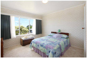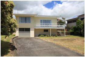 2 good sized bedrooms, kitchen, lounge, bathroom and laundry are upstairs, and downstairs you find the third bedroom and garaging. From the lounge and deck there are views of the ocean and Mayor Island.