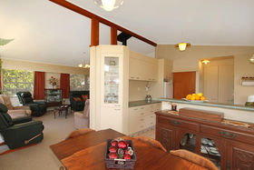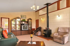 Sunny 3 double bedroom home with heaps of storage space. Spacious open plan living with high raking ceilings, all with the ambience of the log fireplace for those winter evenings.