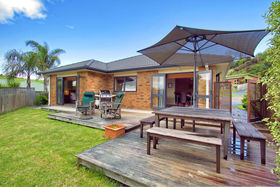 This home offers four bedrooms, and two bathrooms. The generous master bedroom has an ensuite & walk in wardrobe, and also opens via French doors onto a sunny deck.