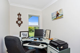 Three double bedrooms and a medium sized office assure private spaces for all members of the family. The main bathroom contains a deep bathtub feature and convenient skylight lighting whilst the master bedroom provides its own en-suite, walk in robe and sliders out to a sun-drenched front patio.