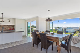 Modern, spacious and light-filled, the kitchen promises a superb environment for the chef and integrated dining and family room keep the host connected to the action. Sliding doors from all social zones offer great natural flow to expansive sunny patios that provide wonderful panoramic views of the beautiful Bay of Plenty.