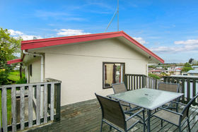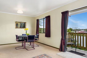 Elevated above the street, enjoying sunset views from a sun-drenched deck is a warm, easy care home. Just enough grounds for you to play or garden in without the stress of a huge section.