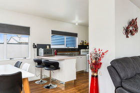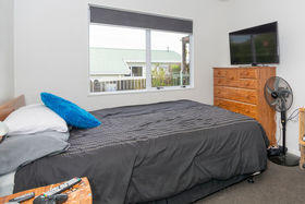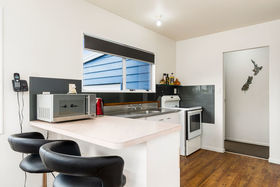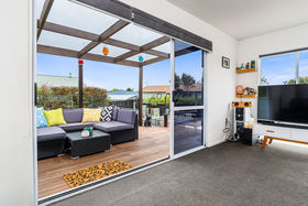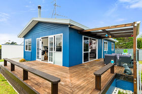Funky in blue and ready for you following 20 years of tightly-held ownership by the same family. Modern living combines with a relaxed beach vibe where a cosy lounge with a wood burner flows via quaint French doors to sunny decking for cruisy outdoor living. A rumpus with a second bathroom is a great space for the teens, though they'll probably prefer grabbing the boards and piling down to the beach at the end of the road.
