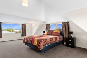 The home is very spacious and has recently had a makeover which will make it a pleasure for the new owners to settle in to. And when we say spacious we think you will be surprised how large the upstairs bedrooms are. There could be a few options here, perhaps to make a second lounge out of one of them. You will find the views, especially from upstairs are very expansive. There is also a bathroom conveniently located on each level which is great for a busy household. And when it's time to relax from all the busy-ness you can choose which outdoor area you prefer, either out the front, under cover looking over your lawn towards town or maybe you want a bit more privacy and retreat to the huge paved private courtyard, which also has a covered area. And for those requiring garaging you will find a generously sized double garage and workshop area, as well as good off street parking.