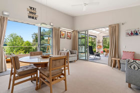 Recline on the sunny north facing deck overlooking your beautiful grounds completely surrounded by trees and it will be easy to believe you are on permanent holiday! Enjoy the relaxed atmosphere of the light airy mono pitch home completed in 2005. There are three bedrooms with master suite facing east for morning sun and three choices for living including a big covered sundeck with roll up sides. The open plan living faces north and a separate lounge enjoys afternoon sun.