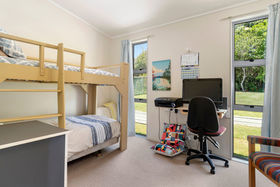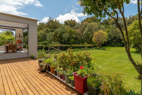 At just over two hectares the property encompasses the home grounds of lawn, flower beds and shrubs, a thick border of mainly native trees, and prolific vegetable plots beside a potting and tool shed. It also includes about an acre of original native bush one side and an attractive tree dotted paddock (approx. 6000 sq m) for grazing or mowing on the other.