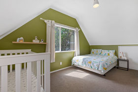 The white staircase leads upstairs to two bedrooms bursting with character and a splash of colour! Spacious, airy, and perfect for a restful retreat. They're complemented by a versatile nook drenched in natural light from a perfectly positioned skylight - ideal for work from home parents, professionals, or children's study and play. A newly renovated family bathroom completes this practical, thoughtfully designed layout.