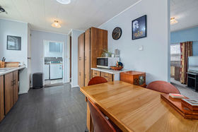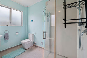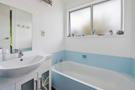 At one end of this family home is the fourth bedroom with lounge, dining, kitchenette, bathroom. A ranchslider onto deck area and own seperate entrance offers independant living.