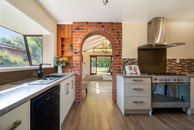 The modernised kitchen sits at the heart of the home, complete with a gas oven for enthusiastic cooks, ample bench space, and great storage. The main lounge opens through dual ranch sliders to the front yard, a point of difference to those on the market. Reeve has a large secondary living area shared with the dining area, featuring a high-pitched ceiling and French doors extending to the expansive backyard, creating the ultimate family hub.