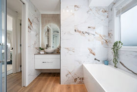 The sleek new kitchen sets the tone with stone benchtops, high-end appliances, and a clean, minimalist design. The open-plan living area connects seamlessly through French doors to a north-facing deck, filled with sunlight and surrounded by landscaped gardens. It's a private, easy-care space perfect for relaxing or entertaining.