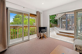 With multiple sleeping options to suit two families on holiday and a nearby walkway that leads to a sandy beach at Waitangi Bay the property offers a lovely, laid back, holiday vibe-whether you are whiling away a few hours relaxing amongst the tranquillity of the bush and birdsong or heading out onto the lake for some water sports and fishing.