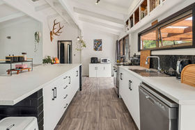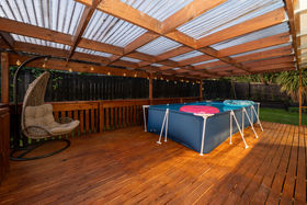 A large, recently stained covered deck welcomes you inside, setting the tone for relaxed indoor-outdoor living. Step through to the open-plan kitchen and living area, freshly renovated with a brand-new kitchen, new carpets, and a full interior and exterior repaint, making this home genuinely move-in ready.