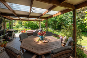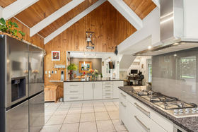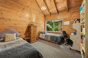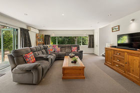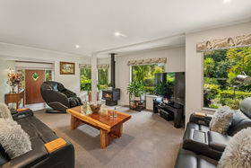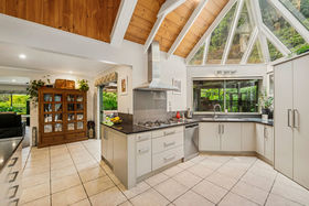 There are many highlights from the high pitched ceilings to the feature windows that frame the leafy views. A log fire and four heat pumps ensure a warm and welcoming environment.