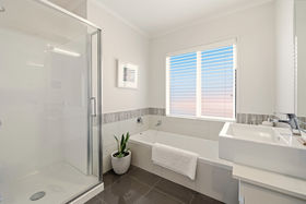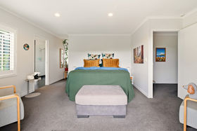 The home's aesthetic is underpinned with a layer of luxurious comfort including double glazing, two heat pumps, full insulation and a carpeted internal access garage. Shutters are a stylish solution for letting in the cooling breeze, while keeping out the sun.