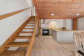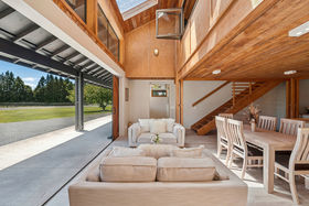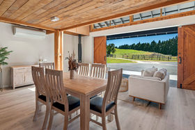 Stable doors, sliding barn doors, a log fire and the generous use of natural timber sets the scene, with open plan living, dining and kitchen space that can open up to the outdoors and overlook the paddocks - the ideal space for Sunday brunch or sunset dining. The bathroom also has access inside and out affording the ultimate practicality for a lifestyle property.
