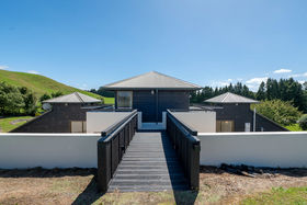 From the gated entry, the koru design driveway winds to the dwelling, a real standout with its unique, architectural design that combines the rustic charm of stables-style features with the comforts for modern living.