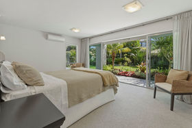 Architecturally designed and enjoying a north-facing aspect, the upper level of this home delivers open-plan living and dining which are both elegant and inviting. The kitchen with its granite bench, quality appliances, scullery and generous bench space forms the heart of the home. The large living area provides flexibility and space for everyone - whether for relaxed family times, entertaining guests or curling up, reading a book and enjoying the peace. Wide stacking doors open to sun-drenched decks where louvres provide protective cover all year round. From the deck you can watch the children or grandchildren play safely in the beautifully established, private tropical garden. The spacious office could become a fourth bedroom if desired.
