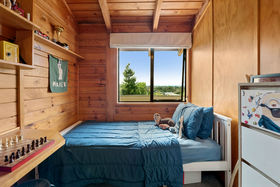 Elevated against a backdrop of native bush and enjoying expansive views across Springfield and out towards the lake, this serene home delivers space, flexibility and a lifestyle that feels wonderfully removed from the everyday. Set at the end of a shared private driveway within a quiet cul-de-sac, the property is exceptionally quiet and private, with birdsong from kereru, tui, and even the gentle presence of cows from the neighbouring farm adding to its tranquil atmosphere.