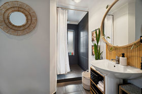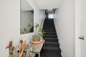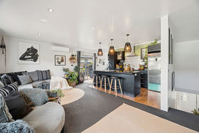 Stairs lead up to the main living level, where a light-filled open-plan kitchen and living area create a relaxed, easy space to come home to. The layout suits both everyday living and casual entertaining, with the living area flowing out to a deck, offering a great spot to enjoy fresh air, relax after work, or spend time outdoors.